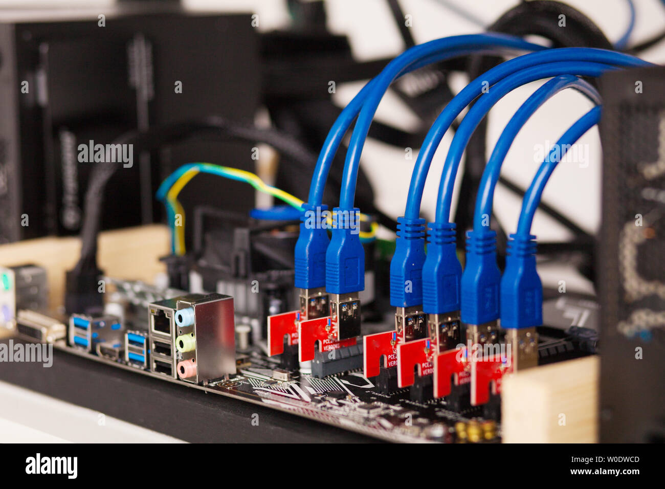Cryptocurrency Mining Rig Connectors On Motherboard For Graphic