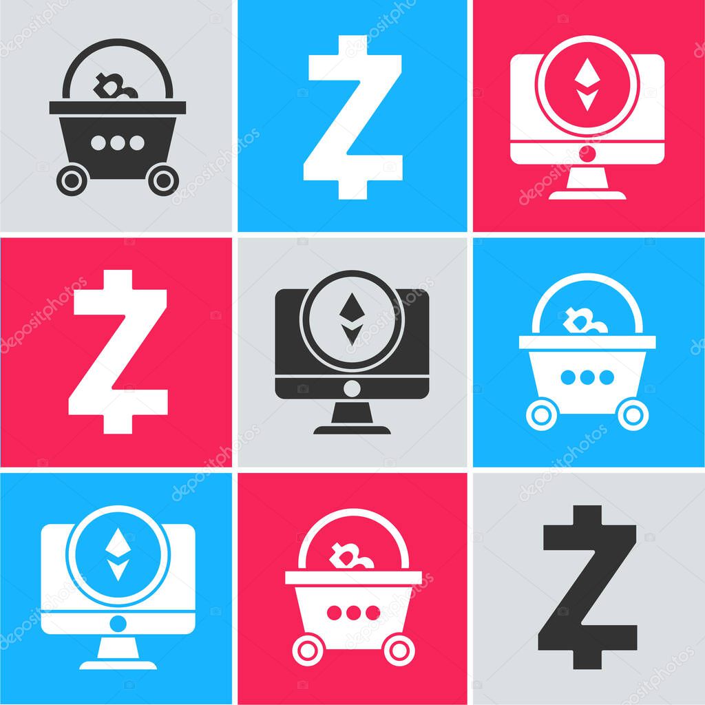 Set Shopping Basket With Bitcoin Cryptocurrency Coin Zcash Zec
