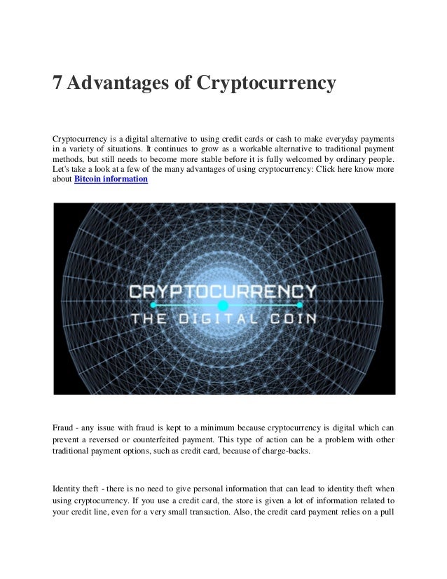 No restrictions on payment. As cryptocurrencies such as bitcoin are used more and more in day to day business transactions we look at some of the distinct advantages they can offer over more traditional forms of payment. Cryptocurrency benefits that are very strong are bitcoins policymakers and its types that do not talk about their causes at all.