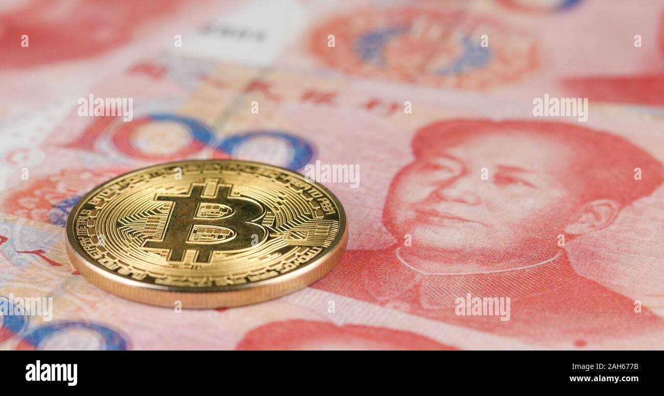Cryptocurrency Gold Bitcoin Coin With China Currency Renminbi