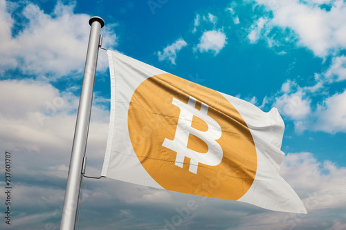 Bitcoin Btc Cryptocurrency Flag 3d Realistic Render Illustration