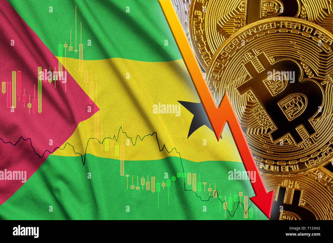 Sao Tome And Principe Flag And Cryptocurrency Falling Trend With