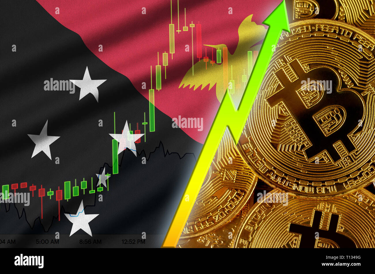 Papua New Guinea Flag And Cryptocurrency Growing Trend With Many