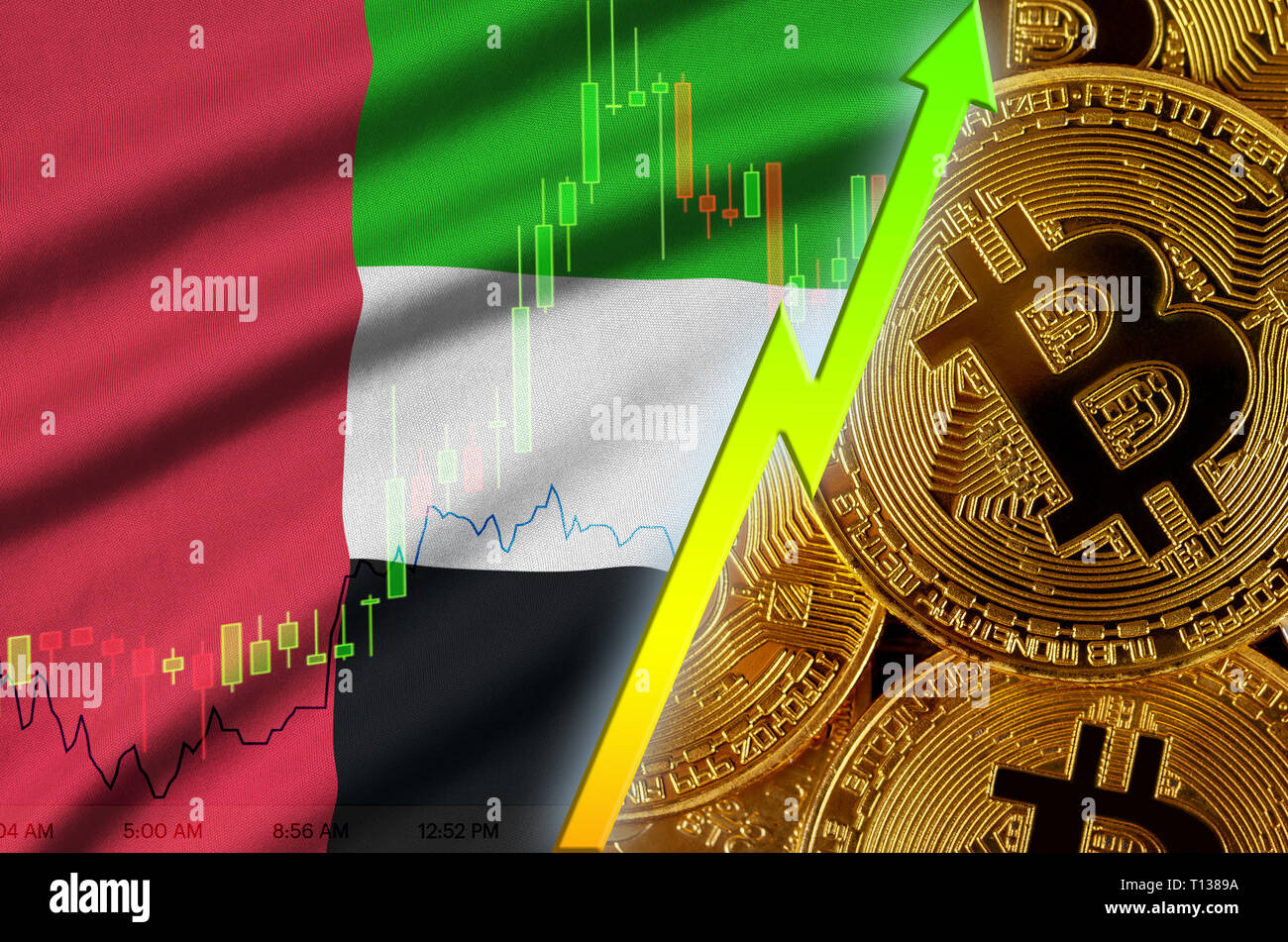 United Arab Emirates Flag And Cryptocurrency Growing Trend With