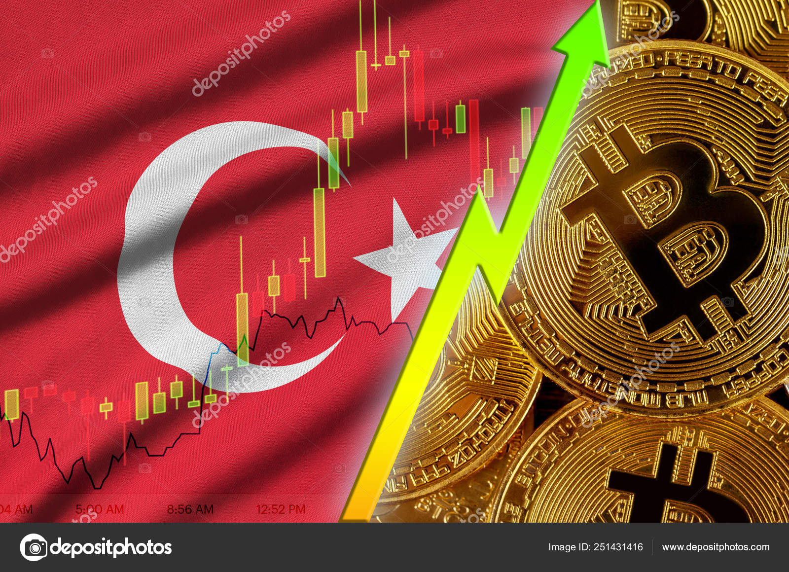 Turkey Flag And Cryptocurrency Growing Trend With Many Golden