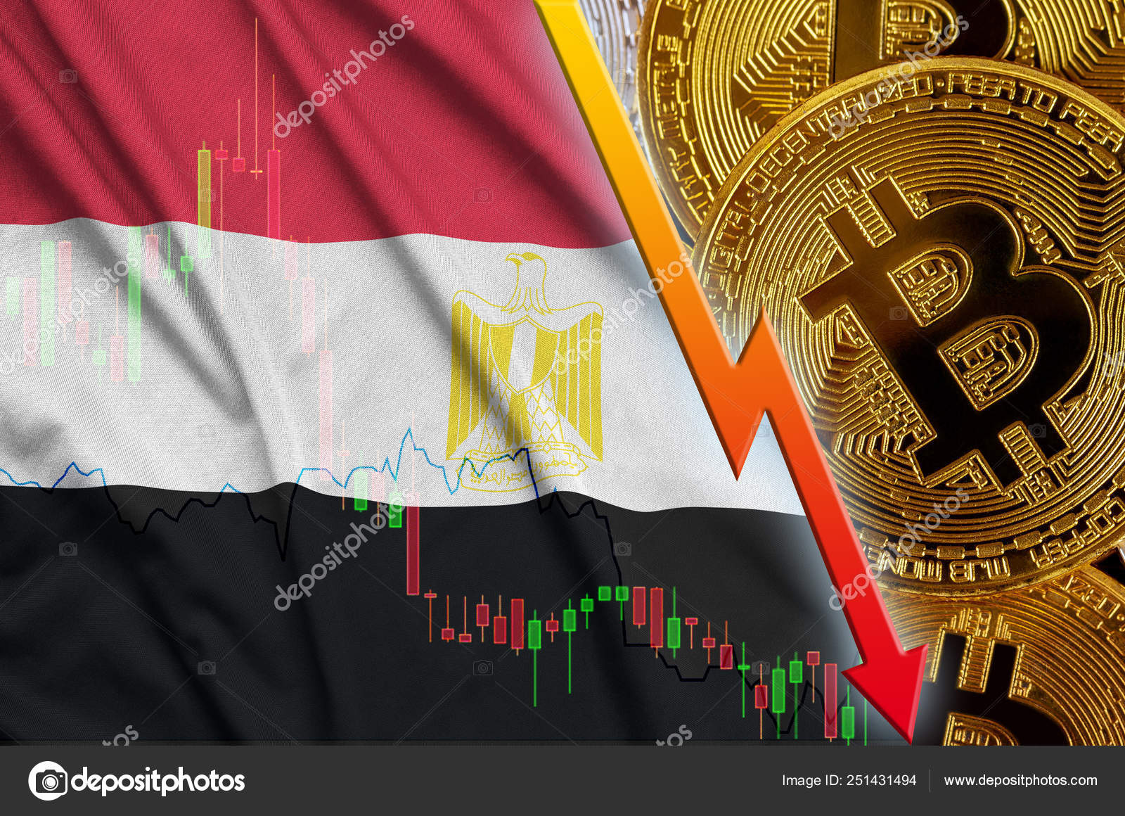 Egypt Flag And Cryptocurrency Falling Trend With Many Golden