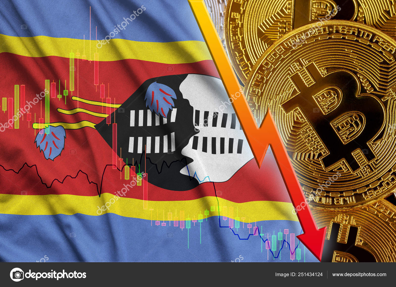 Swaziland Flag And Cryptocurrency Falling Trend With Many Golden