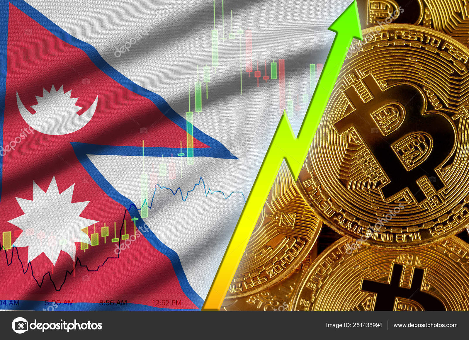 Nepal Flag And Cryptocurrency Growing Trend With Many Golden