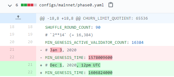 The ethereum 20 deposit contract has just been released on github with genesis time set at dec 1 2020 12pm utc. The genesis block of the ethereum 20 beacon chain has been confirmed for december 1st. 1st pushing forward a major milestone according to eth 20 researcher justin drake who tweeted that ethereum 20s beacon chains launch has officially been set.