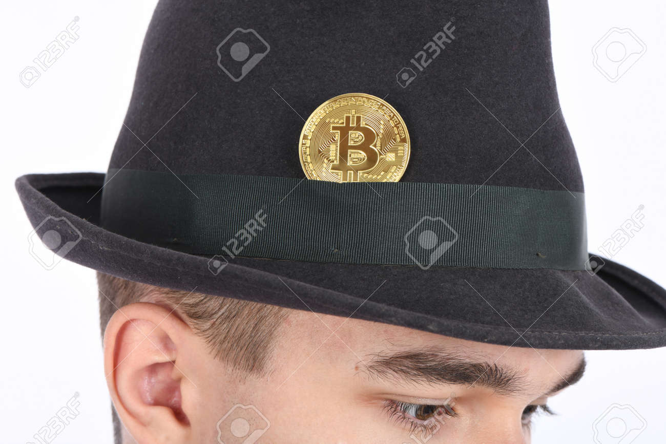 Bitcoin In A Felt Men S Hat Isolated On White Background High Stock Photo Picture And Royalty Free Image Image 124421969
