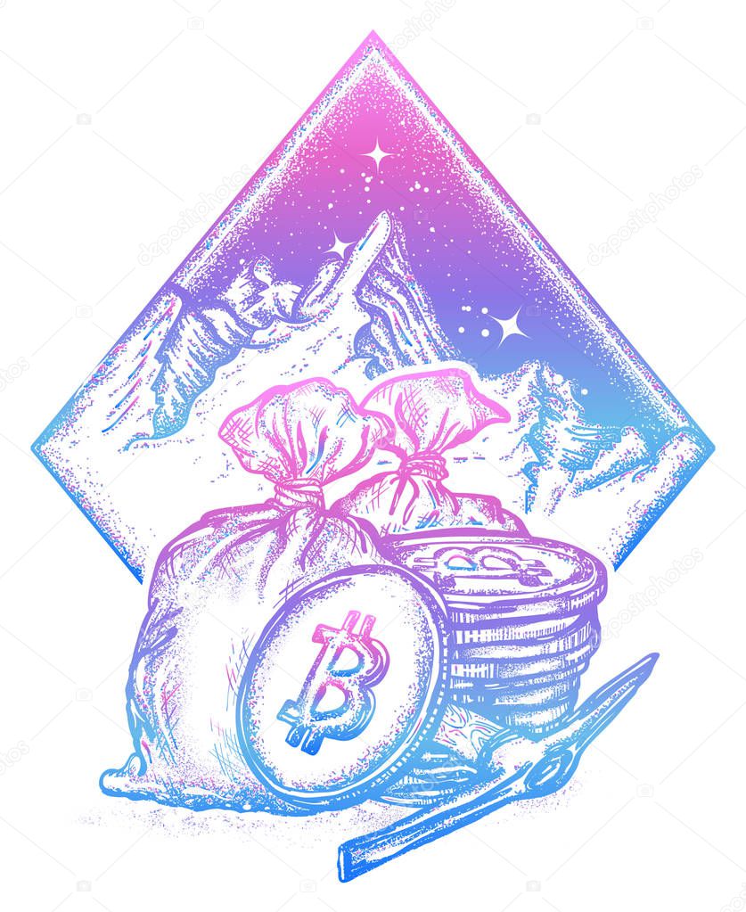 Bitcoin And Mountains New Gold Rush Tattoo And T Shirt Design
