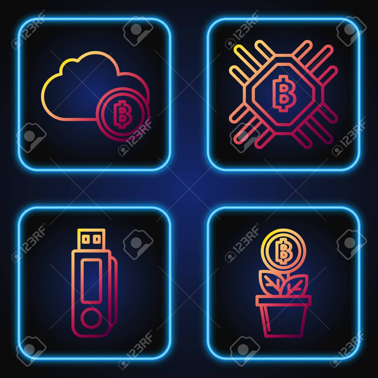 Set Line Bitcoin Plant In The Pot Usb Flash Drive Cryptocurrency
