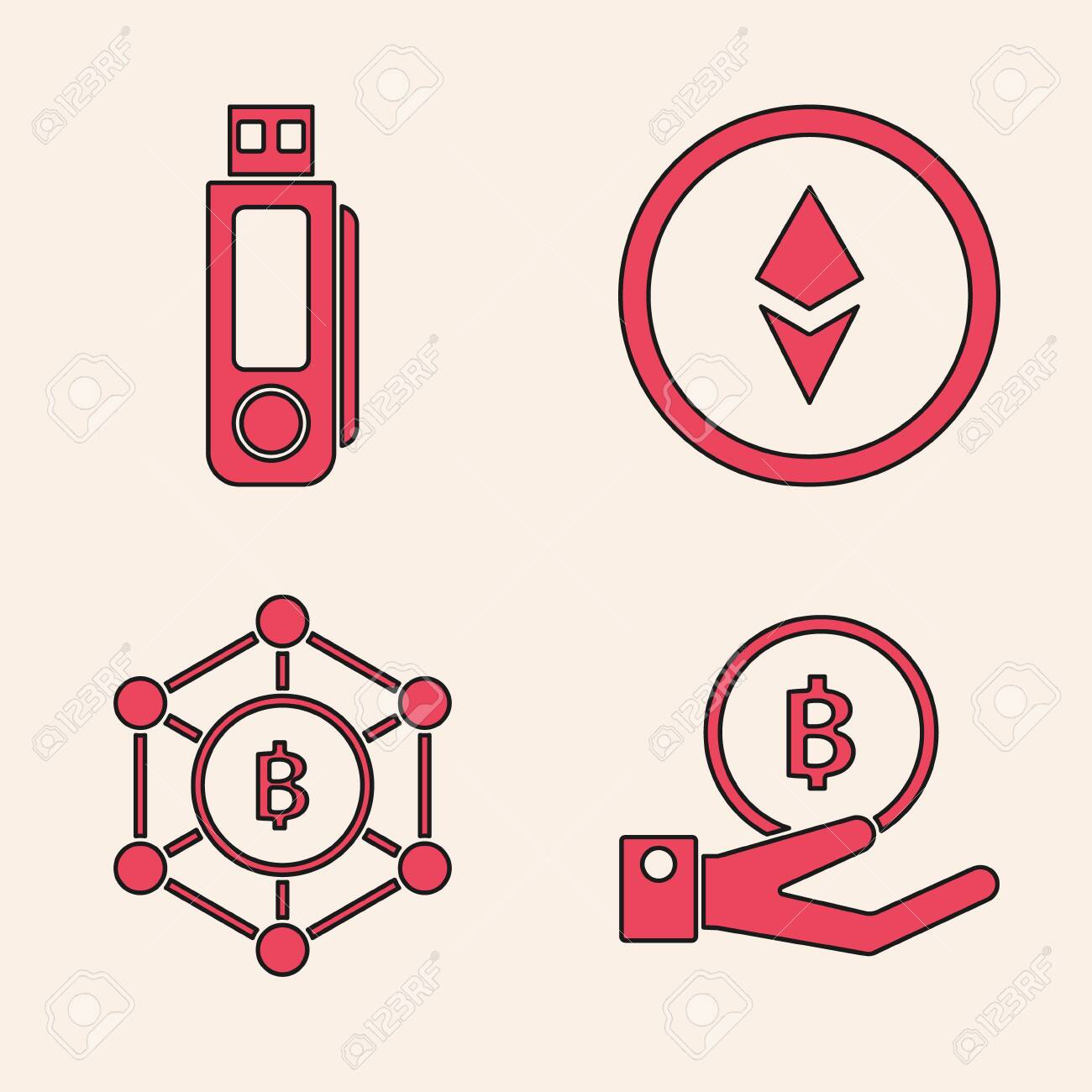Set Cryptocurrency Coin Bitcoin Usb Flash Drive And Blockchain