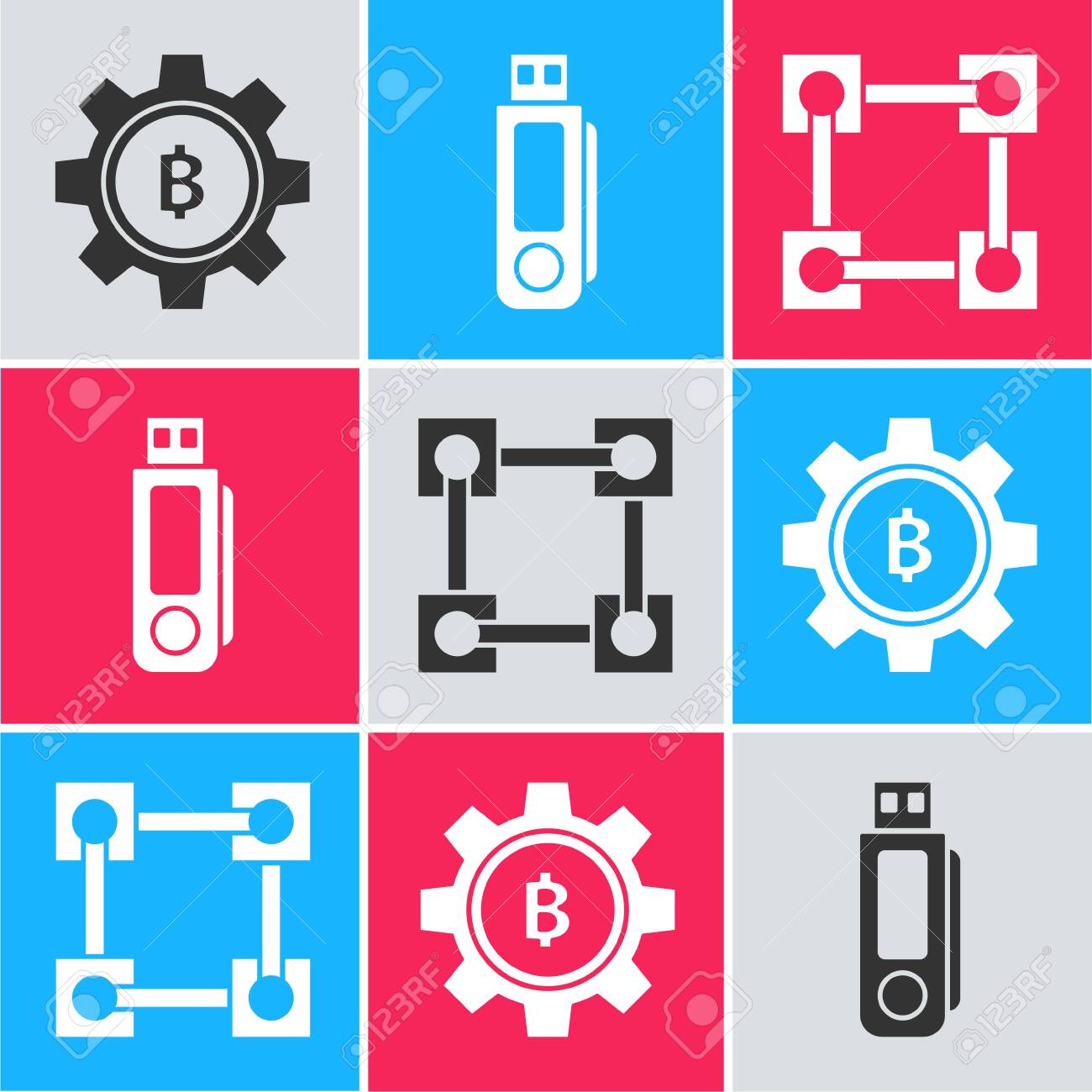 Set Blockchain Technology Usb Flash Drive And Cryptocurrency