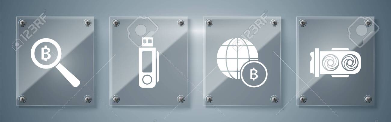 Set Mining Farm Globe And Cryptocurrency Coin Bitcoin Usb Flash