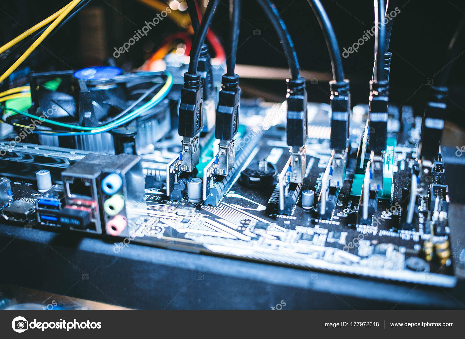 Cryptocurrency Mining Rig Connectors On Motherboard For Graphic