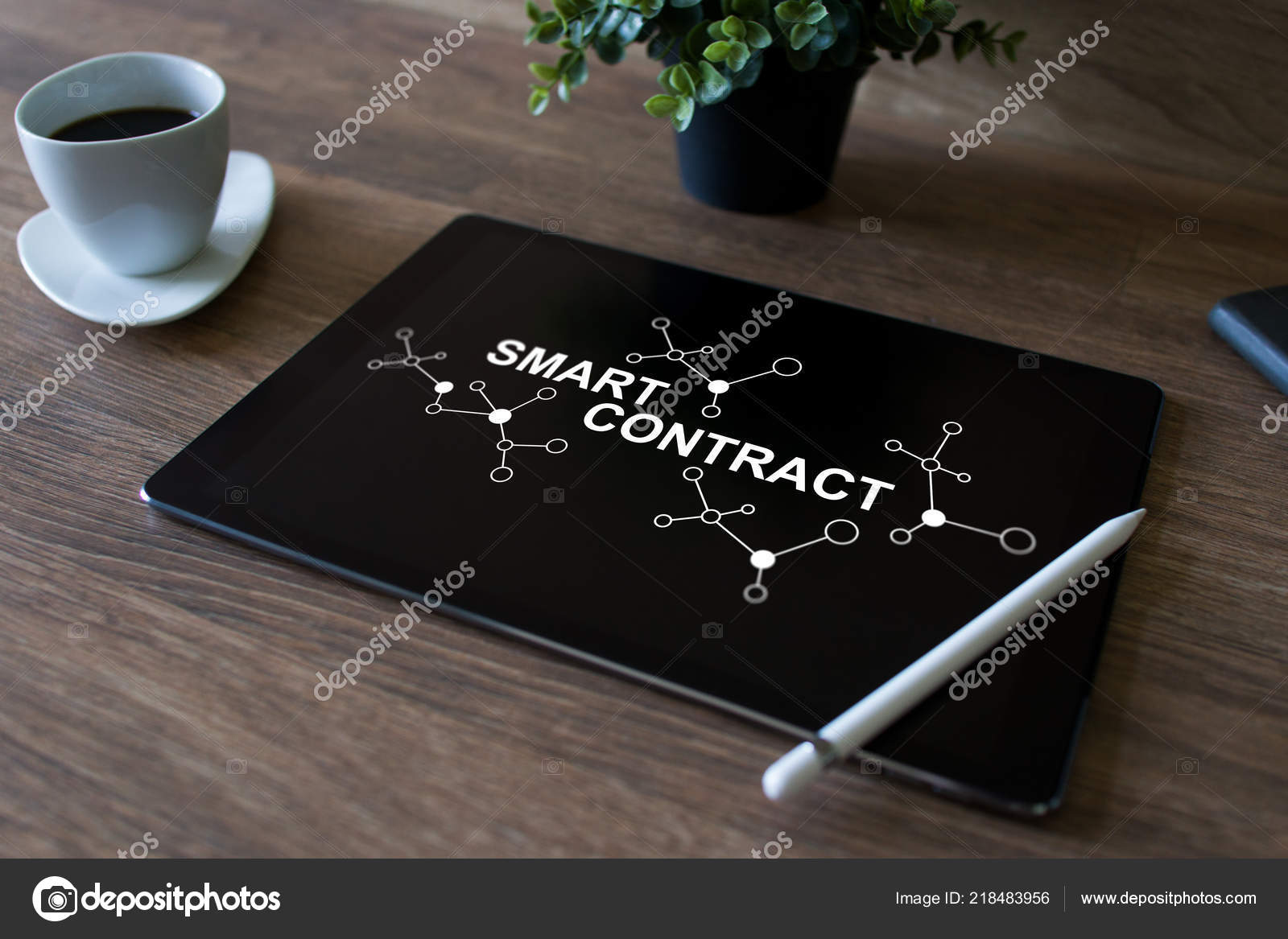 Smart Contract Blockchain Based Technology Concept On Screen Cryptocurrency Bitcoin And Ethereum Stock Photo C Wrightstudio 218483956