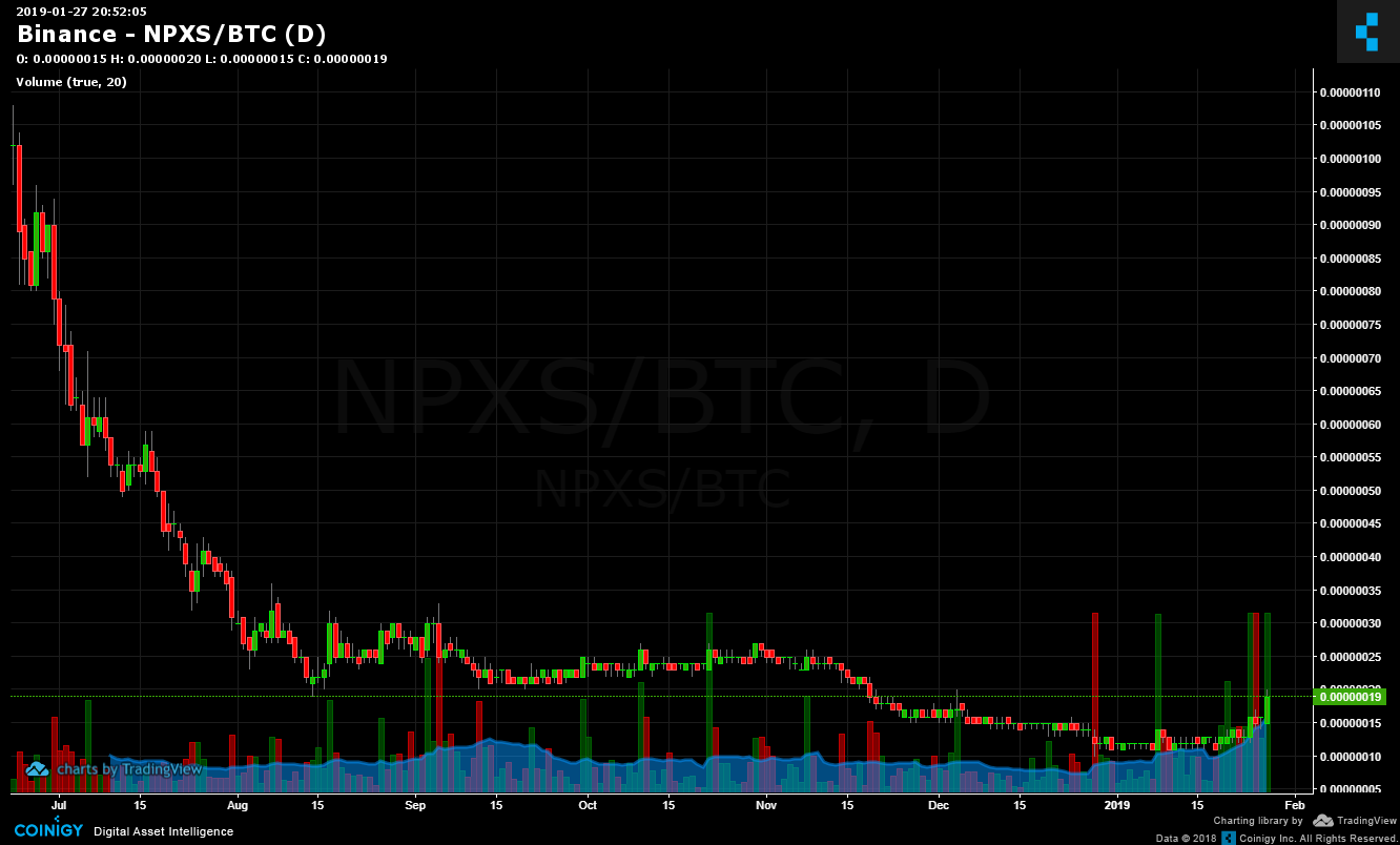 Binance Npxs Btc Chart Published On Coinigy Com On January 27th 2019 At 8 52 Pm