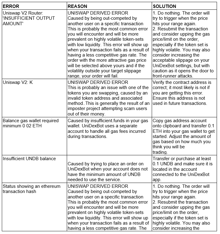 Unidexbot Common Errors Below Is A List Of Common Errors You By Unidexbot Medium