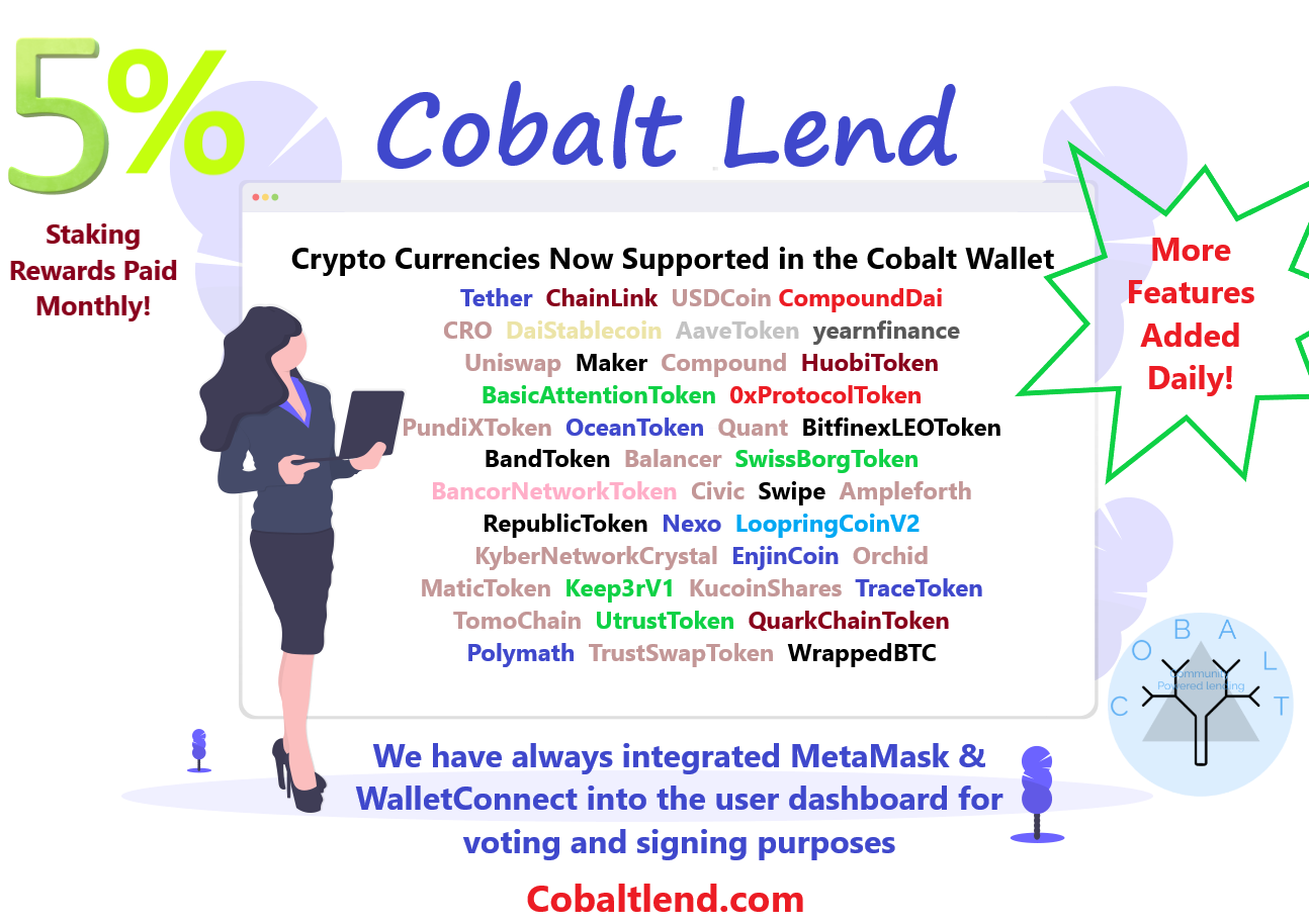 Crypto Currencies Now Supported In The Cobalt Wallet We Have Also Integrated Metamask Walletconnect Into The User Dashboard For Voting And Signing Purposes Cobaltlend Medium