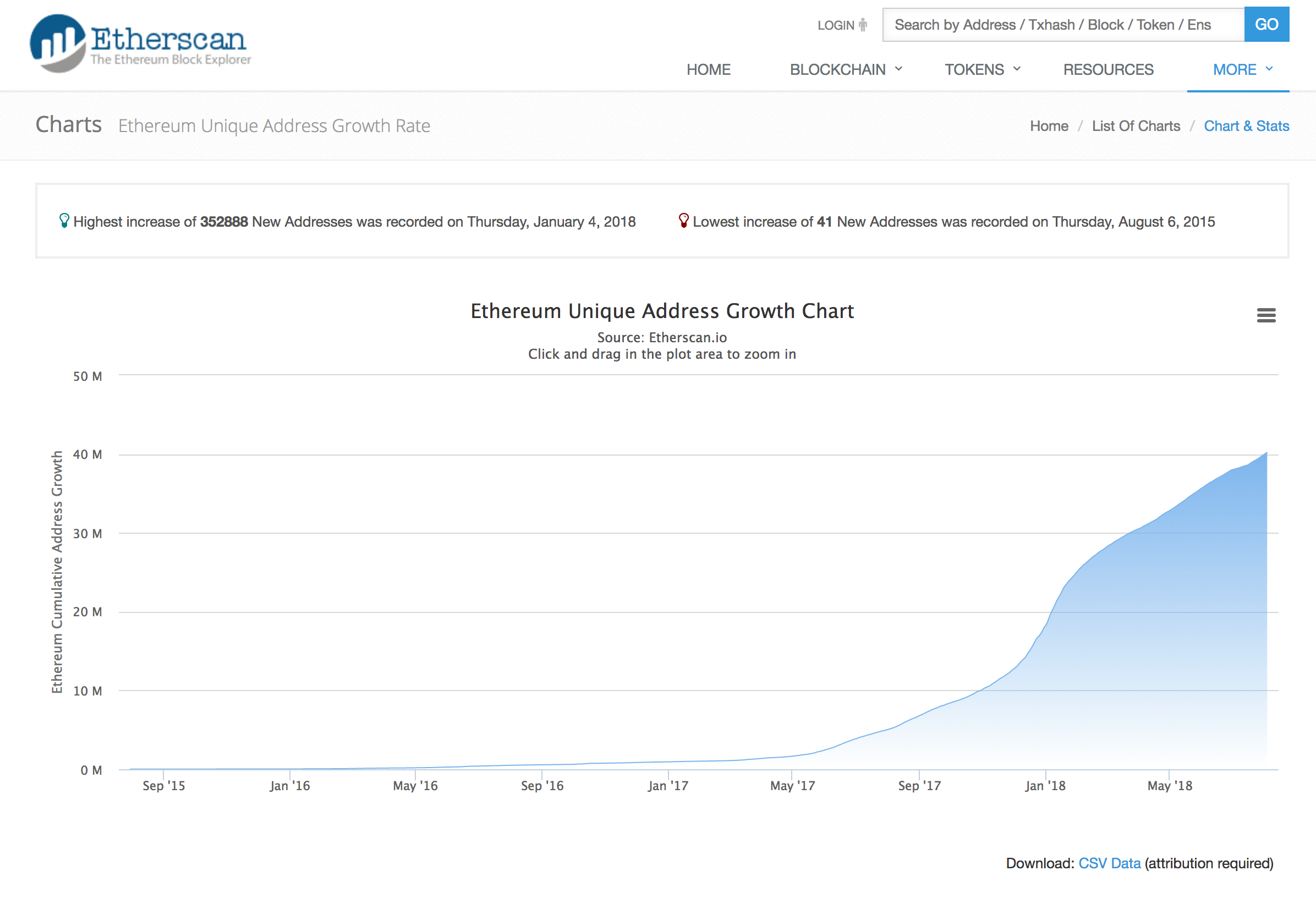Historical data since 2009. You can view growth and cumulative growth for a date range. Address growth is often an important fundamental factor.