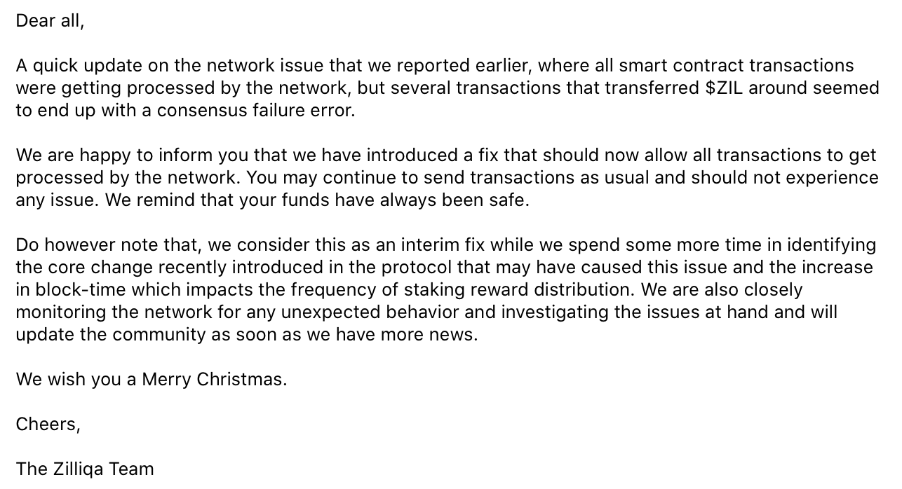 Zilliqa On Twitter Update Below Thank You For All The Love Support Happy Holidays Ms Https T Co Dw2m9qt259