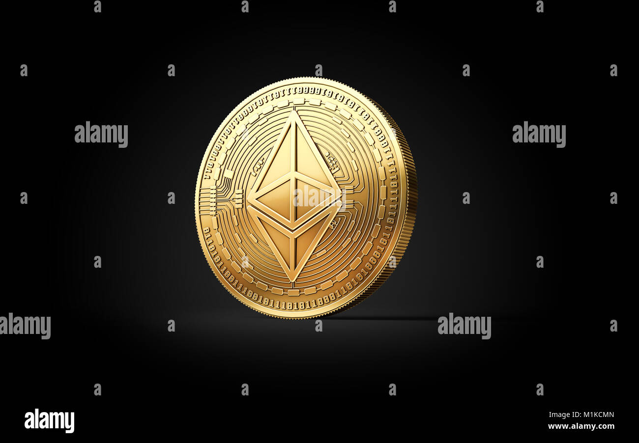 Golden Ethereum Eth Cryptocurrency Coin Isolated On Black Background Stock Photo Alamy