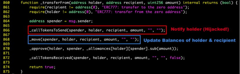 Technically the main logic behind these two incidents is the incompatibility between erc777 and those defi smart contracts which might be misused by the attacker to.