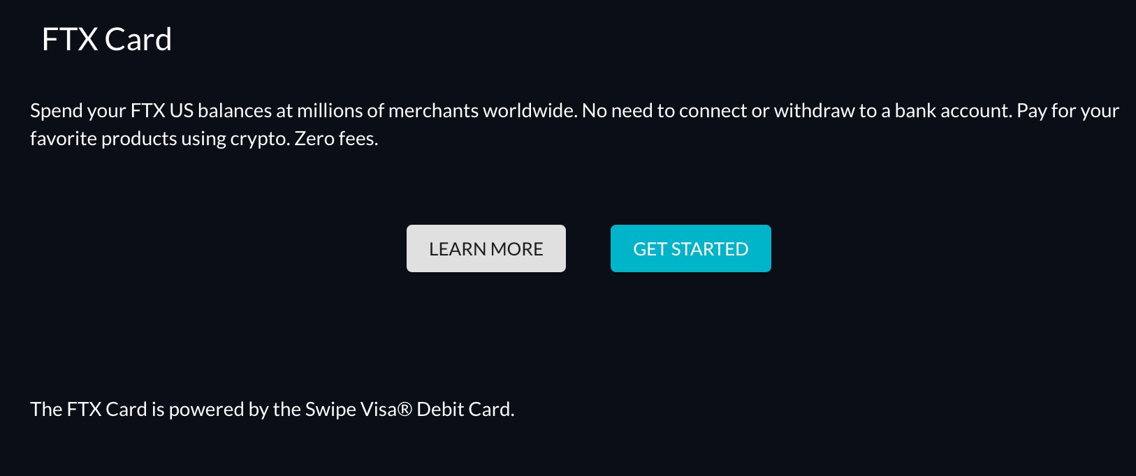 Sign up for an FTX Card powered by the Swipe Visa Debit Card. Go to ftxuswallet.