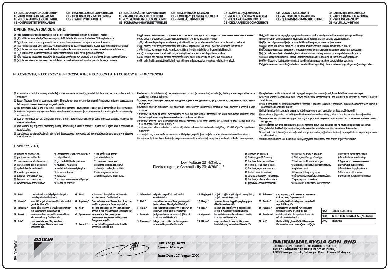 Control your indoor from any location with an app via your local network or internet Seasonal efficiency values up to A in cooling Choosing for an R-32 product reduces the environmental impact with 68 compared to R-410A and leads directly to lower energy consumption thanks to its high energy efficiency. Online controller via app. Additionally the new Sensira FTXC-B offers optional WLAN connectivity allowing access to the Daikin online controller via an app.