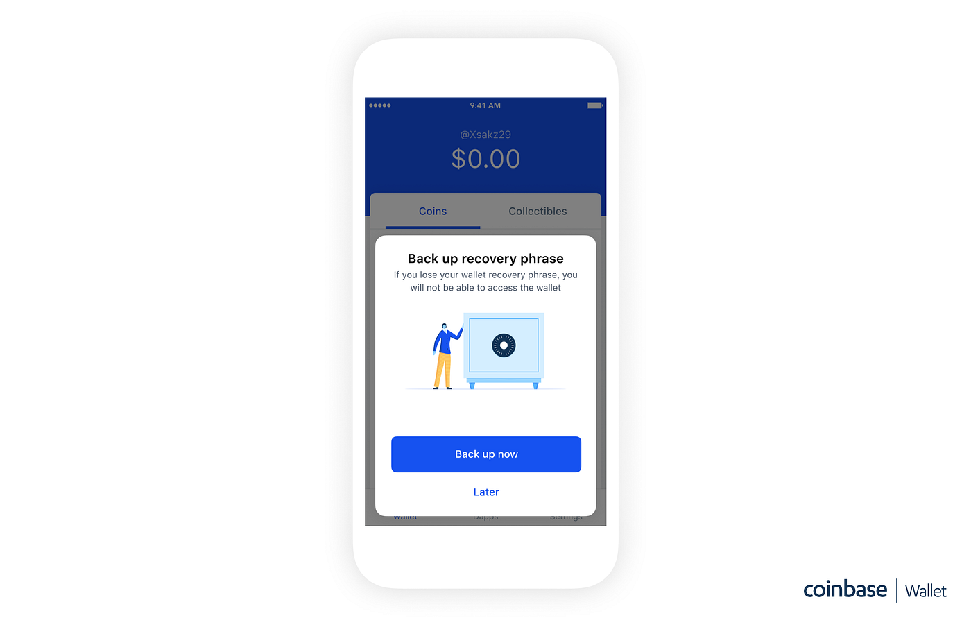 The Coinbase Wallet app generates a 12-word recovery phrase to secure your private keys and also offers encrypted cloud backups for your phrase.